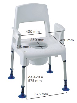 Chaise-toilettes percée réglable en hauteur avec une conception 3 en 1 lui permettant de s'utiliser à la fois dans les toilettes, la chambre ou dans la douche