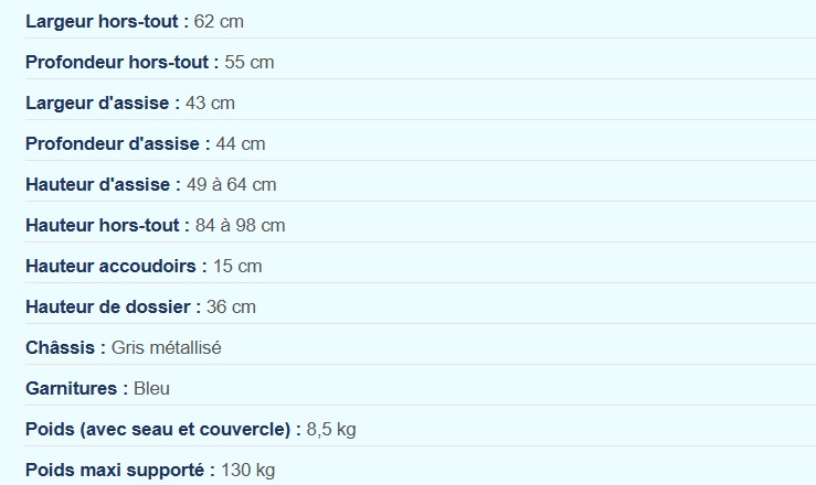 Chaise garde-robe avec une grande amplitude de réglage de la hauteur d'assise pour s'adapter à toutes les tailles