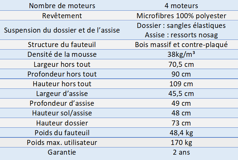 Grâce à ses 4 moteurs, ce fauteuil offre un ajustement précis de toutes les positions.